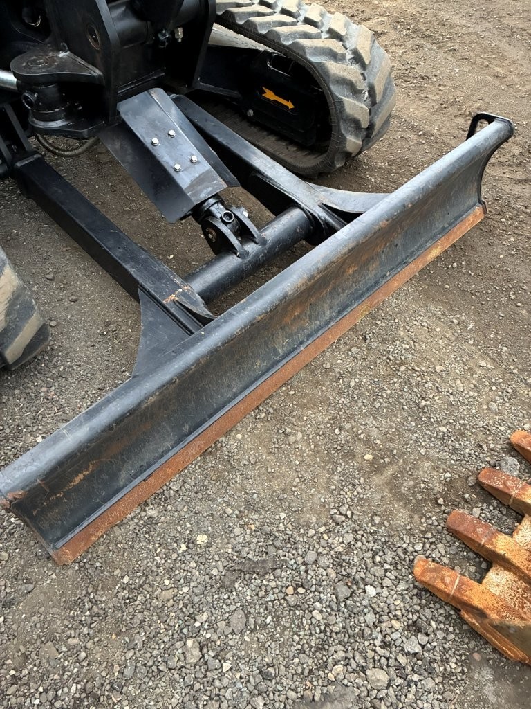 The excavator features an enclosed cab with heat and air conditioning for year-round comfort. Its zero tail swing design allows operation in tight spaces, while the pattern selector and two-speed travel give operators flexibility. The machine comes equipped with a tag wain Roy style bucket coupler and hydraulic thumb, plus both 24" and 18" digging buckets.