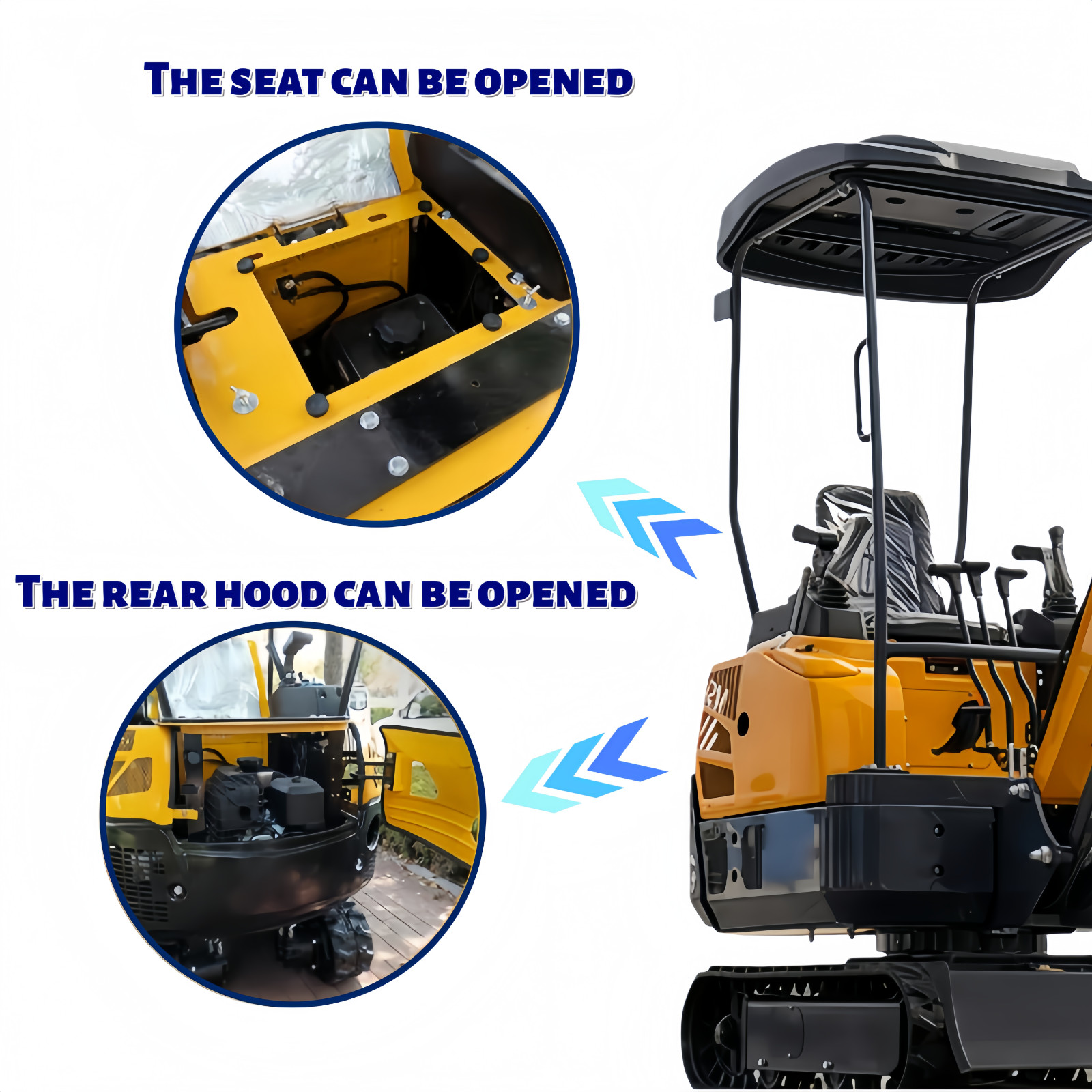 The excavator excels in tight quarters, able to maneuver through narrow spaces found in urban construction, interior decoration, and road maintenance projects. Its miniaturized design makes it more energy efficient than larger models, reducing fuel consumption during operation.
