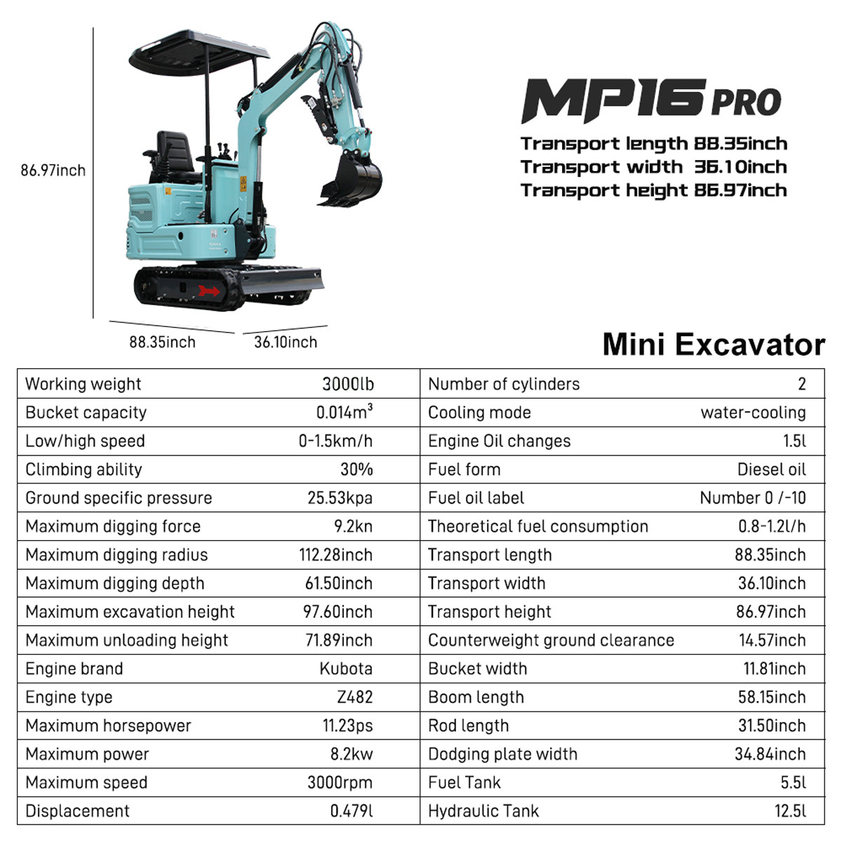 MachPro Machinery - Modern Collection. Its compact design and powerful performance make it an ideal choice for narrow spaces and high-efficiency work. Fuel form Diesel oil. Maximum digging force 9.2kn.